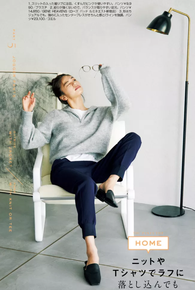 束腿針織褲的款式有點像衛褲,隨隨便便套上衛衣外套出門,也是青春又有活力。▼