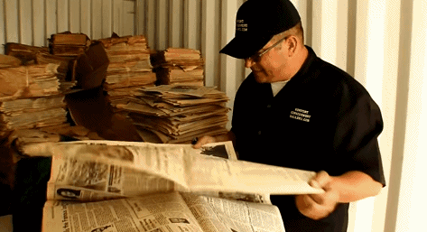 一位資深的倉庫寶藏獵人在拍賣中以4500塊錢拿下了一間堆滿似乎是廢舊報紙一樣的倉庫,看樣子是翻了個大車。