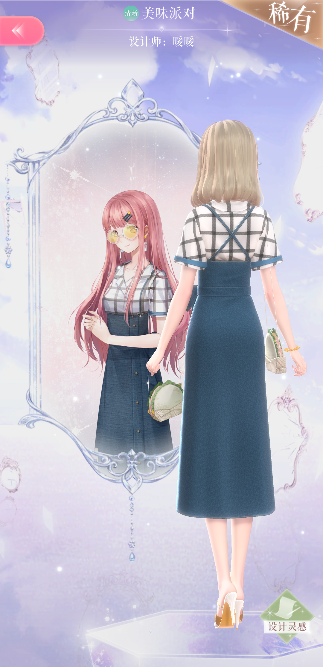 “美味派對”還有兩個亮點設計,漢堡包形狀設計的小挎包可愛又青春,當你轉到背後視角時,你會發現這一套高腰牛仔裙特別顯身材,高腰的設計使暖暖穿上馬上變成一米八大長腿。