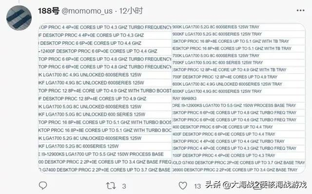 數碼爆料博主 @momomo_us 近日表示,現在已有海外經銷商列出了 i9-12900KS 的商品資訊。曝光圖片顯示,i9-12900KS 的產品程式碼為 BX8071512900KS,基礎功耗為 150W,比 i9-12900K 高 25W;CPU 最高頻率 5.5GHz,比 i9-12900K 高 0.3GHz。i9-12900KS 的價格達到了 790 美元(約合 5018 元人民幣)。值得注意的是,該款處理器的國行的價格可能會更高,因為 i9-12900K 國行盒裝的價格已經達到了 4999 元。