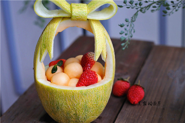 哈木瓜做的果籃挺漂亮的,尤其是小朋友,不愛吃水果的都忍不住吃了好幾個球球,小小的果籃,分分鐘搞定,搞氣氛最適合了!