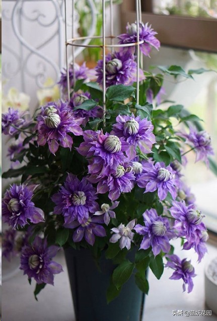 鐵線蓮被譽為藤本皇后,是非常受歡迎的爬藤花卉,而且鐵線蓮品種多,花色各異,各個品種的花期也是不一樣,雖然是爬藤植物,但鐵線蓮卻是非常適合盆栽的,所以,即使是陽臺黨,也一樣可以養殖鐵線蓮,欣賞鐵線蓮的美。做好早春管理,是鐵線蓮春季大量開花的保障,今天藍妖就重點,講一下,鐵線蓮的早春管理。