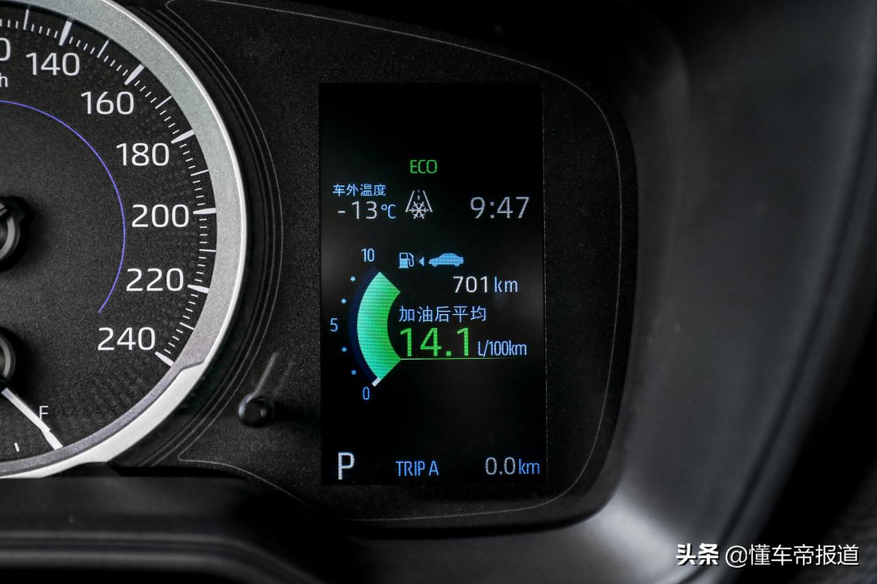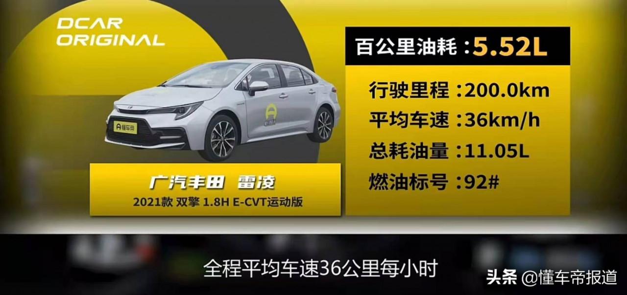 當然,這樣的成績並不足以作為參考。結合我們懂車帝App實測來看,在北京城市道路行駛,且室外平均氣溫27度,車內空調調節至24度自動,駕駛模式選擇自動的情況下,雷凌雙擎最終的成績為5.52升/100公里,相比我們測試的4.1升/100公里要明顯高出不少。