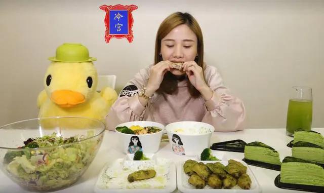 吃播一姐和男友分手後,怒擺全綠宴大有深意。