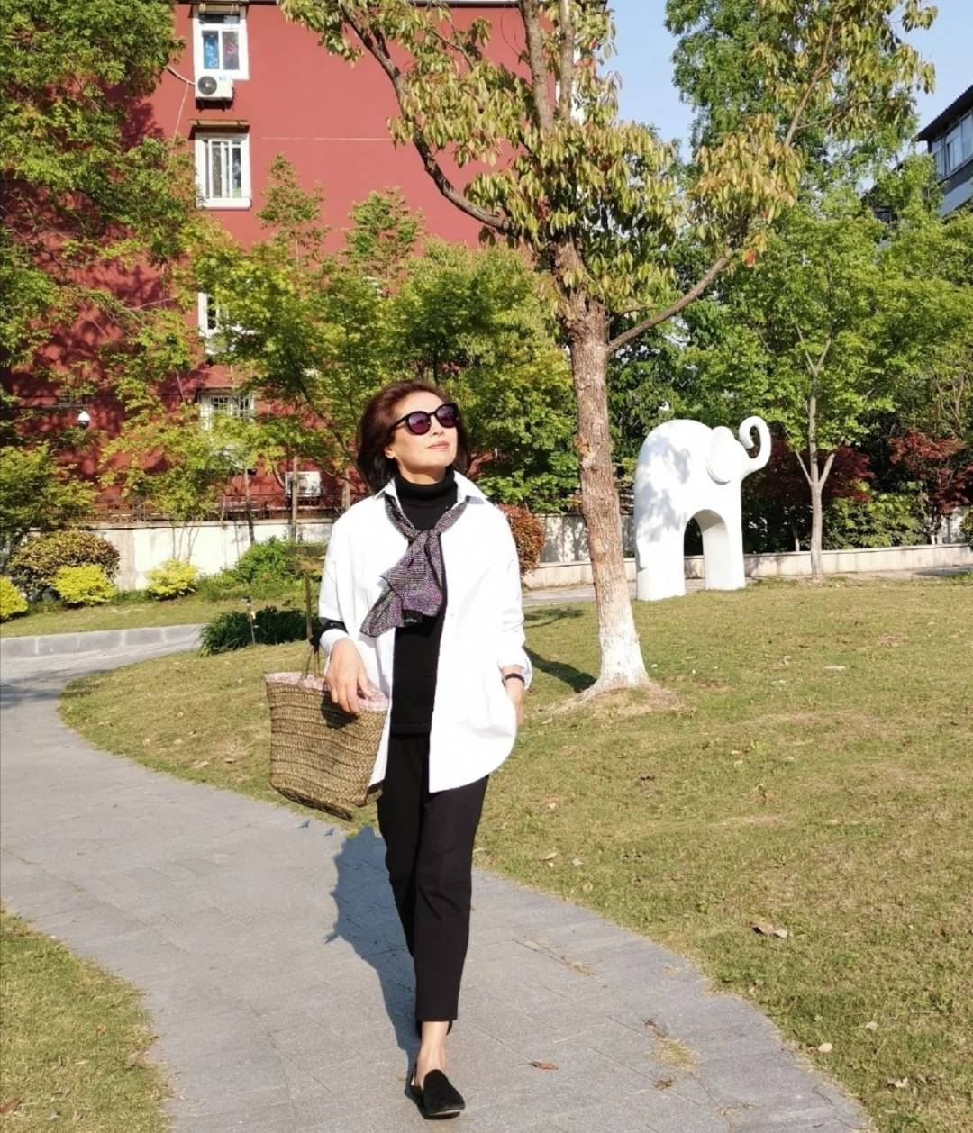 這位六十歲的媽媽,她的日常穿搭可以學習一下,因為採用的都是很簡潔的服裝的配合,卻能讓女性保留最大方的著裝體驗。白色長款襯衫,飄逸範兒十足的樣式,可以讓它脫離了嚴肅拘謹的氛圍。在裡面疊加黑色單品,黑白分明,視覺效果不沉悶。