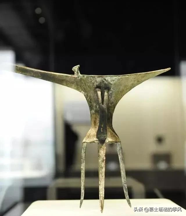 夏代乳釘紋銅爵,1975年出土,是夏代貴族舉行宴飲時的酒具,銅爵高22.5釐米,造型舒展空靈,簡練樸素,國之瑰寶,被成為“華夏第一爵”,洛陽博物館鎮館之寶。