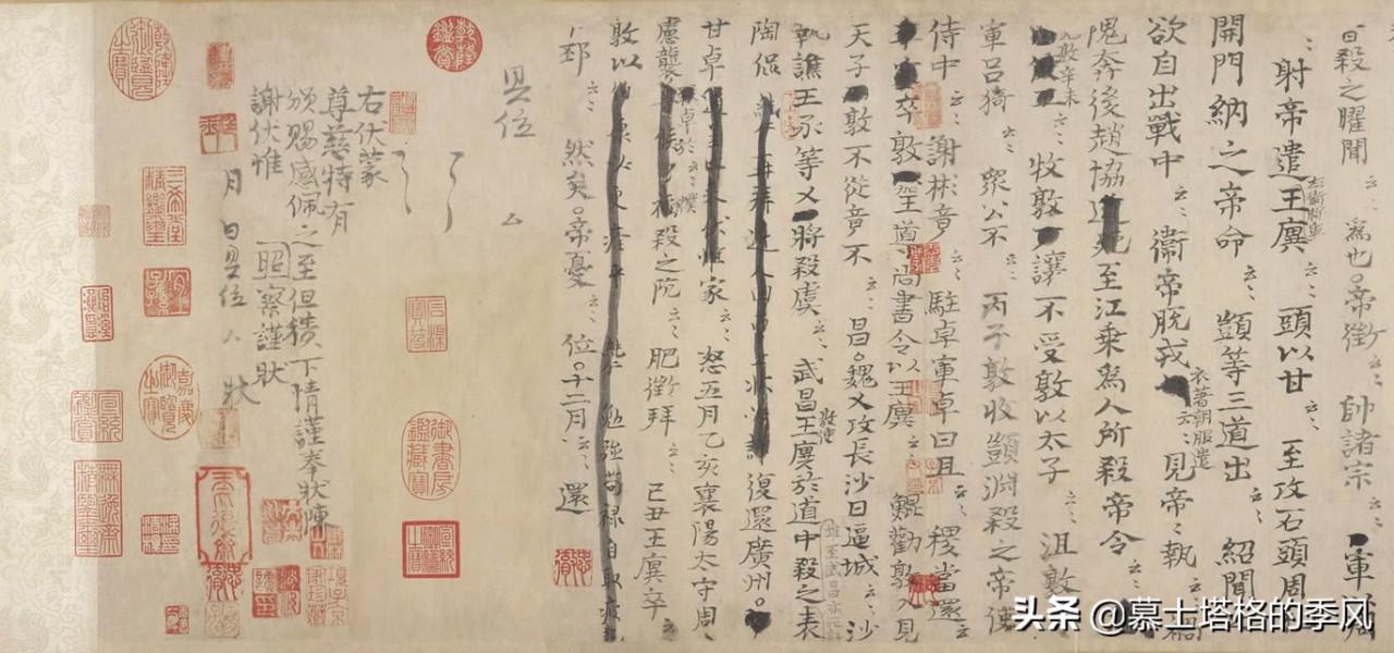 司馬光《資治通鑑》手書殘稿。中國國家圖書館鎮館之寶,上面還有乾隆皇帝的藏印,是司馬光《資治通鑑》全世界唯一的手稿。