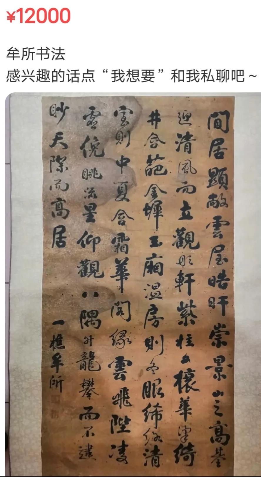 下面這些民間作品作者雖然名不見經傳,在網上查不到作者的名字但他們的書法水平是相當高的,也具有一定收藏價值和研究的。價格雖然和名人作品不能相提並論,清代、民國名家一幅作品拍賣成交價幾十萬、幾百萬但這些作品也具有歷史價值、文化價值、藝術價值、欣賞價值和經濟價值。在網路裡售價三千至一萬多,由些看來只要字寫的好沒有名氣在歷史的長河裡也是具有一定收藏價值的。