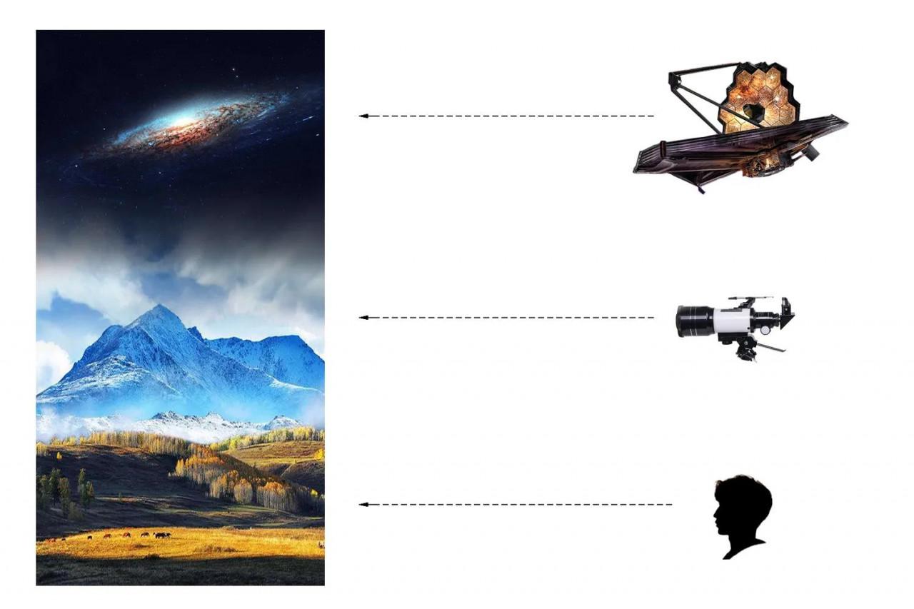 如果距離太遠看不清楚怎麼辦?最簡單的辦法當然是用望遠鏡,望遠鏡幫助我們“看”得更遠、更清晰。天文望遠鏡、太空望遠鏡都是非常好的選擇,如圖11所示。其實,“望”不就是用眼睛“望”出去嗎?“望”遠鏡的名字就已經表達了我的意思:並不是光進入眼睛被動地看到影象,而是用眼睛主動向前“望”。所有的工具都是人的能力的延伸,望遠鏡就是眼睛的延伸。
