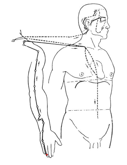 三焦者,上合手少陽,出於關衝,關衝者,手小指次指之端也,為井金;