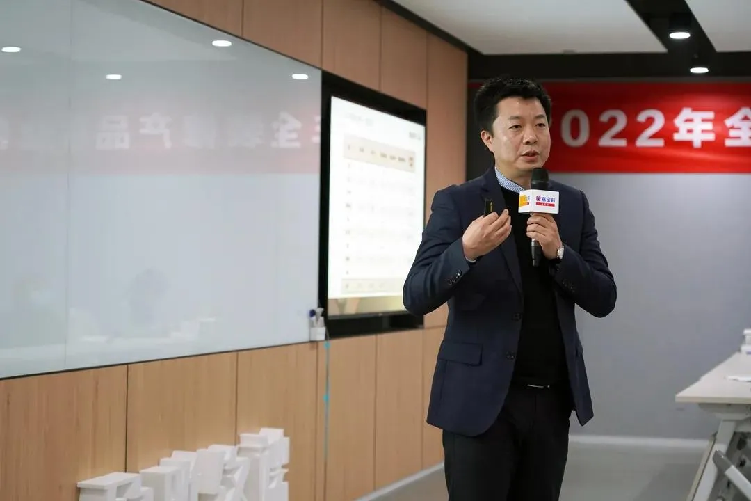 全裝修產品事業部副總經理程俊在大會上闡述了2022年重點研發專案及技術工作規劃,他指出:“2022年,我們將按照事業部的發展戰略、總目標,瞄準市場需求,提升研發實力,挖掘優勢創新發展,打造高質量暢銷產品,提升嘉寶莉產品的市場競爭力。