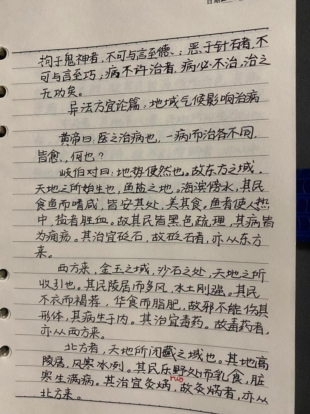 最近幾日總是左肋下隱隱作痛,由於並不影響工作也就沒有去看醫生,但是持續時間比較長了,心裡有點犯嘀咕。想到自己最近抄寫黃帝內經,就把自己抄過的又從新翻看起來,按著上面所說疾病成因和自己的症狀實驗性的自我判斷了一下,下班後去洗了個熱水澡拔了下火罐,不成想竟然完全沒有了症狀。不知是歪打正著還是真的對了症。小得意之後更加堅定了抄書的決心,知識就是力量就是良藥啊!