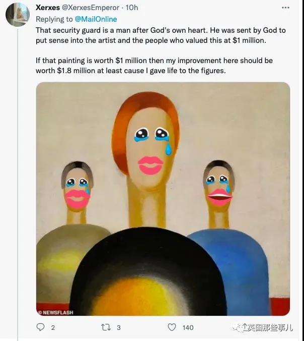 外國有些網友知道後認為,保安畫得挺不錯。甚至網友認為,這幅畫現在徹底出名了,估價怕是要翻上10倍。