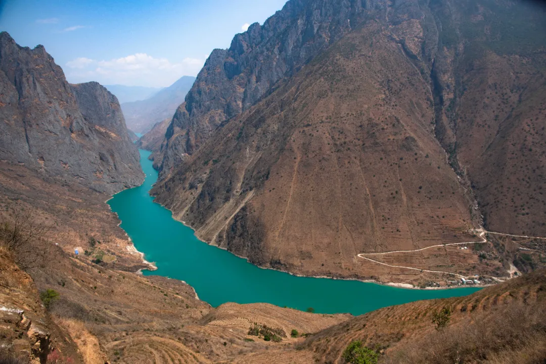 途中經過先輩們人工開鑿的 60 米和 90 米兩個隧道,用以保證茶馬古道的暢通無阻,如今徒步翻越太子關,穿過古隧道,身處峽谷高山之中,身側是蜿蜒壯觀的金沙江,走在崖壁帶羊腸小道上,不禁嘆大自然的神奇。這一段也是徒步中最為驚險刺激而又景觀多變的一段。
