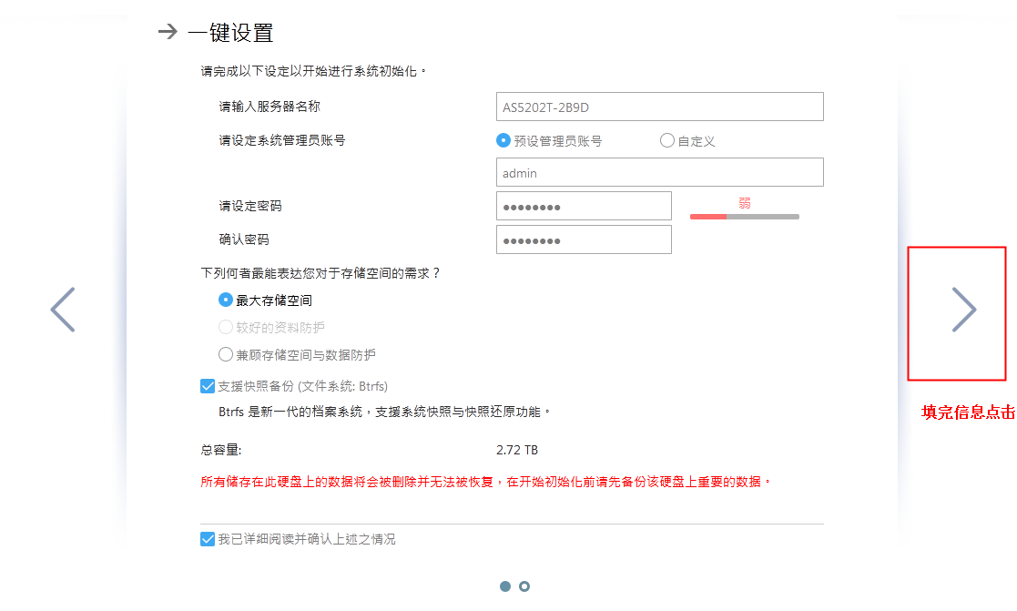 注:AS1102TV2、AS1104TV2這類基礎機型不支援快照,只能選ext4格式。