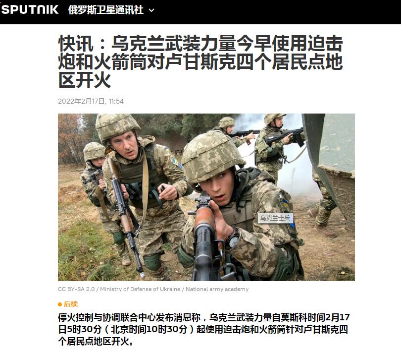 實際上,今年以來東烏克蘭地區戰火不斷。2022年1月12日,據俄羅斯《訊息報》轉引頓涅茨克民兵新聞社的宣告,從1月10日起,烏克蘭軍隊頻繁炮擊頓巴斯,在短短24小時內就炮擊了7次。
