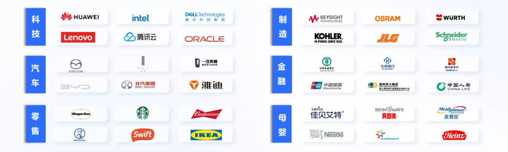 得益於硬核產品實力和對豐富的行業認知,賽諾貝斯成為了華為、英特爾、戴爾、美素佳兒、亨氏、宜家、哈根達斯、科勒、一汽馬自達等眾多世界500強企業及行業領軍企業長期、穩定的營銷服務商,累計超過1000 家企業選擇與賽諾貝斯攜手提升營銷效率。