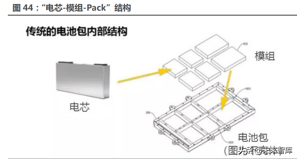 電池的基本 PACK 由三部分組成:電芯(Cell)、模組(Module)、電池包(Pack), 其中模組為電芯提供必要的支撐保護作用,實現每塊電芯單獨管理,有效控制電池 溫度。
