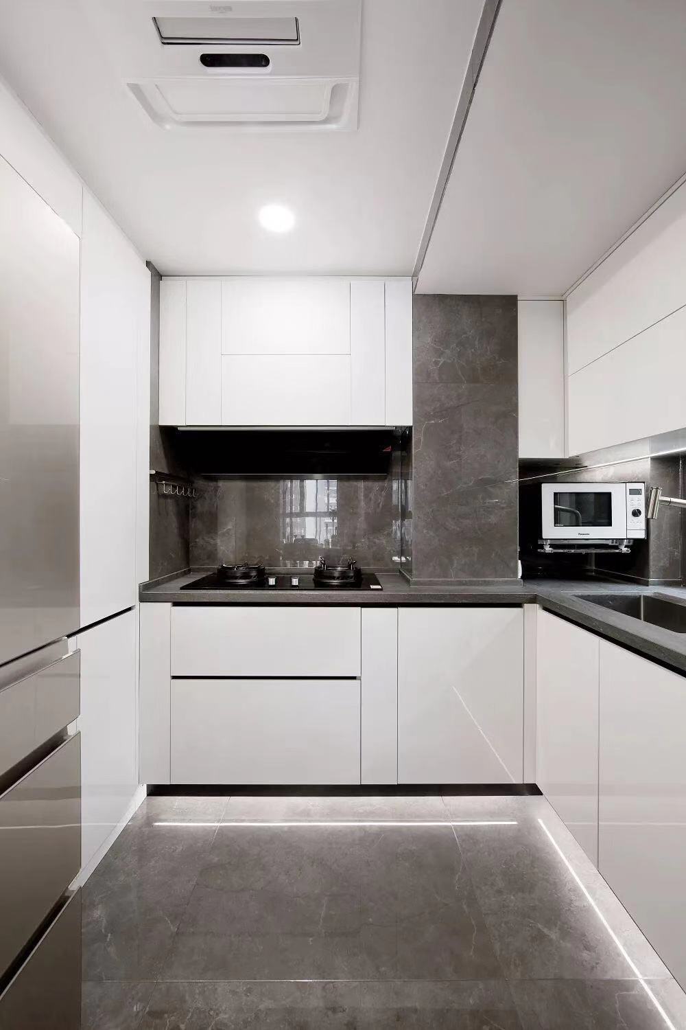 為櫥櫃定製選擇合適的材料。如櫃體選用多層實木或不鏽鋼櫃體,相對防水。桌面由石英石製成,相對容易清潔且耐用。門板的選擇應便於清潔油漆板或丙烯酸門板。
