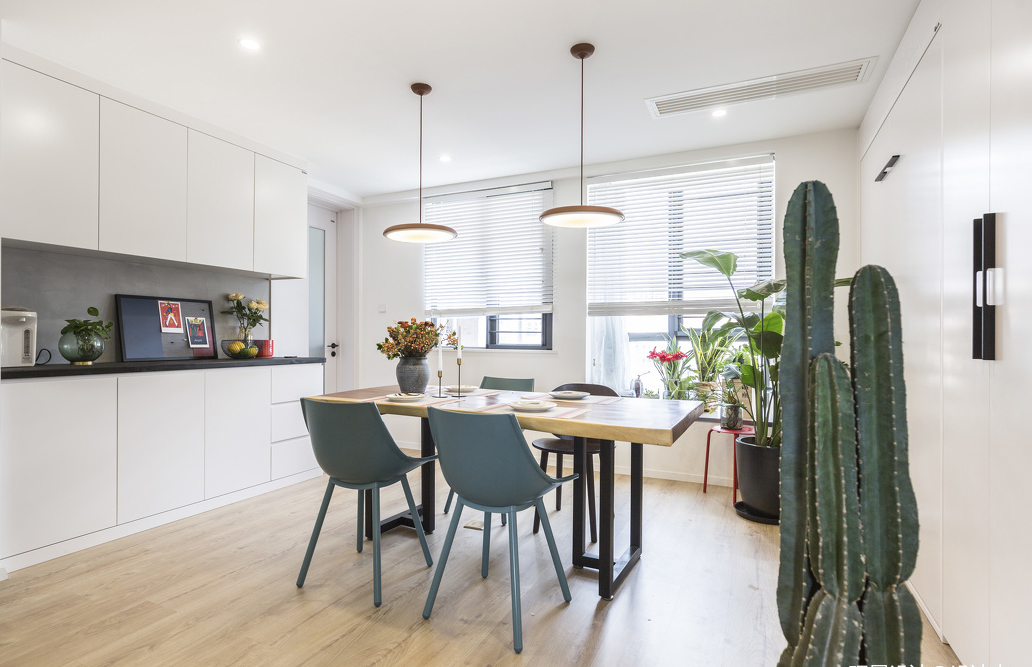 餐廳裡應該安裝一個側櫃。否則,在未來很長一段時間內,家裡的桌子會不知不覺地慢慢積累很多雜物,比如水杯和水壺。每次搬家都很不方便!