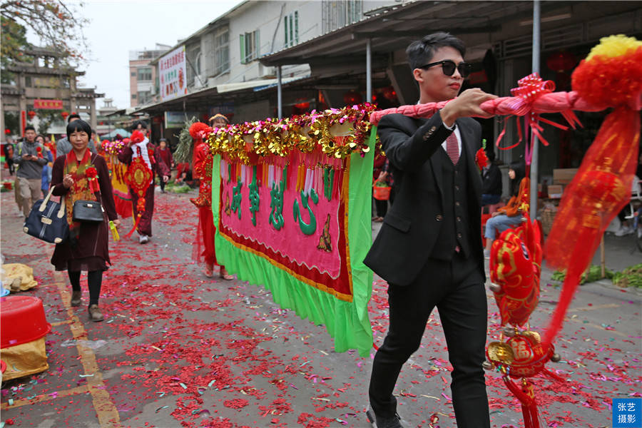 馬路兩旁站著很多村民觀看,遊行隊伍中,鑼鼓喧天,炮聲雷鳴,活動的氣氛突然變得高漲起來。
