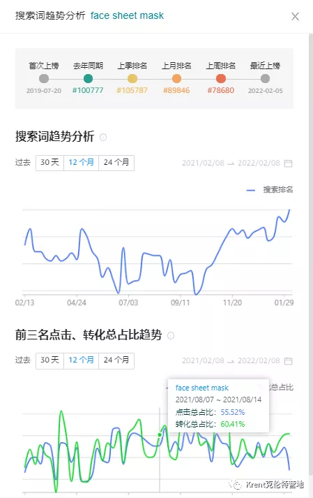 這個產品複述一遍就是:針對喜歡DIY調配精華液的女性使用者在家裡做面部清潔美容的需求。表面看確實有做人群細分需求明確,可解決方案跟市場體量的判斷出了問題。1.它是乾的,2.它需要自己按興趣調配美容液體。3.喜歡自己調配精華液的女性使用者的市場容量有多大?4.買回去自己調配這個需求是否是偽需求?你問一圈女性朋友的答案,再結合ABA資料跟TOP 10榜單的競對關鍵詞排序反查一下,就會知道這個詞在站內的TOP 3 ASIN轉化總佔比高達60%以上,搜尋詞頻率排名十多萬開外了。可以做出判斷:這是一個偽需求。從源頭就出了問題。後面什麼刷單/白帽廣告打法都無濟於事。