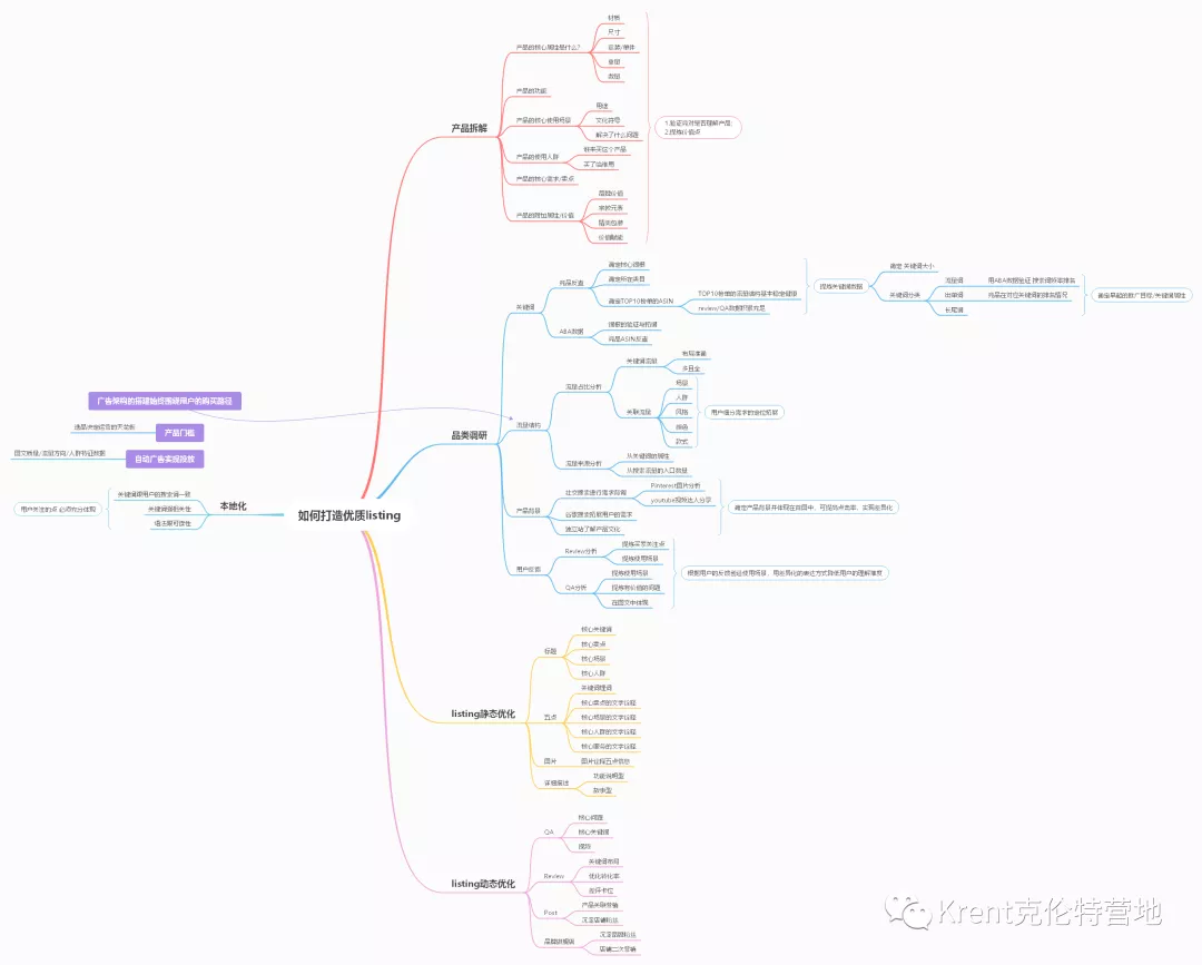 下面這張圖是學習自lenry哥的思維導圖。你自己觀察就會發現,放在品類調研之前的還是對產品的拆解。不論是寫listing還是對流量結構的分析,都始終回到的使用者需求跟使用者的購買路徑。