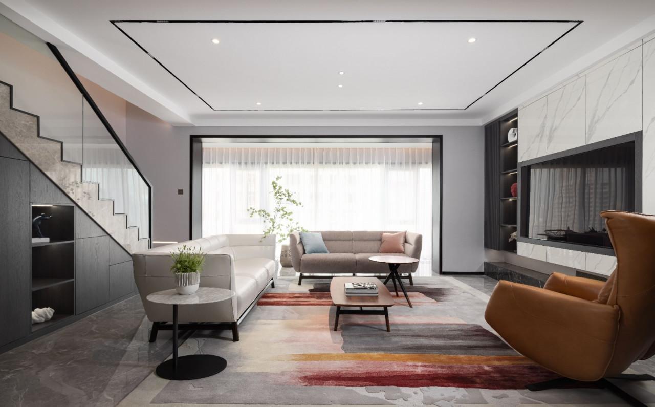 放眼整個客廳,你能感受到那種冷冽的氛圍,也能瞥見一抹俏皮感,比如色調浪漫的地毯,以及植物的點綴,都成為了空間中的亮點。