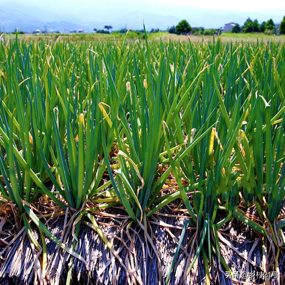 幹稻草苗就類似我們人類的棉被,在小香蔥的行距之間鋪設一些稻草,然後澆水淋溼,就可以對土壤進行保溼,從而防止土溫過低,就可以幫助小香蔥防寒了。