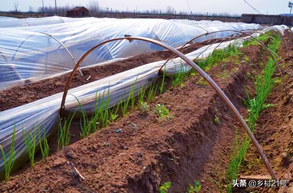 早春時候,夜晚的溫度一般都會很低,尤其是遇到寒潮之後,溫度就更加的低,很多時候都會有霜凍;在小香蔥幼苗的時候,容易被霜凍凍傷,因此,這個時候,我們最好能夠防止霜凍打到香蔥幼苗上,就可以避免香蔥被凍傷的情況;而能起到這種效果的就兩種,一種是大棚種植,另外一種就是搭建小拱棚了,搭建小拱棚是最廉價的防寒防凍措施。