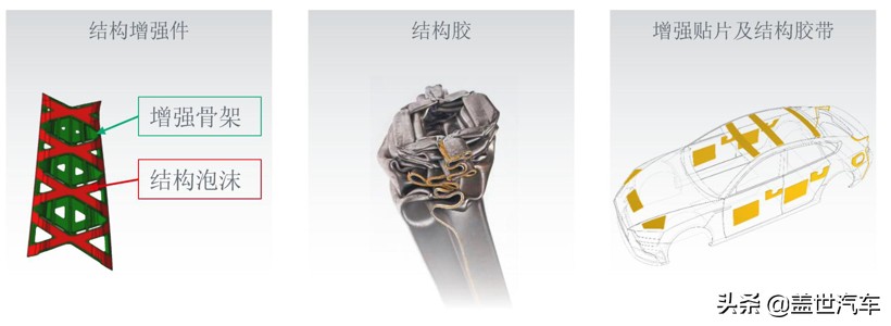 就結構增強件而言,資料顯示,漢高產品採用輕質高效能結構泡沫和增強尼龍骨架,適用於立柱、門檻、橫樑、車架、發動機支座、車門、車身面板,經證實可減少白車身及開閉件重量40千克以上,達到或超過碰撞和NVH安全標準,同時使聯結件減少6%。