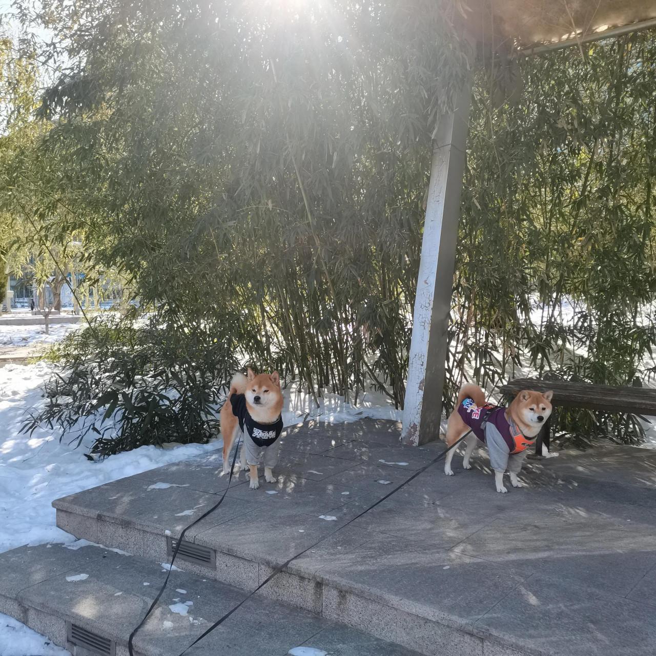 好久沒看到雪的狗子,見了雪高興的撒歡玩兒了,柴犬的天性表現出來了,活潑好動,穿上衣服尤其可愛。