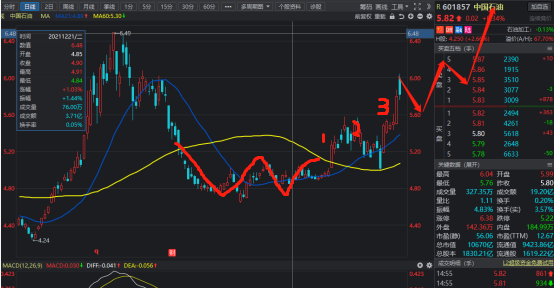 中國石油在經過長時間調整後,逐漸走出了一個W型的築底,築底完成後有穩步向上的趨勢,並有望迎來新一輪的主升浪走勢;一旦大盤止跌,資金選擇非賽道股進攻,石油板塊有望獲得增量資金的青睞