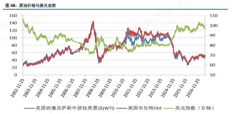 當美元升值時,國際上黃金、石油、銅等大宗商品原料價格有下跌的壓力;反之,當美元貶值時,此類大宗商品的價格將上漲。