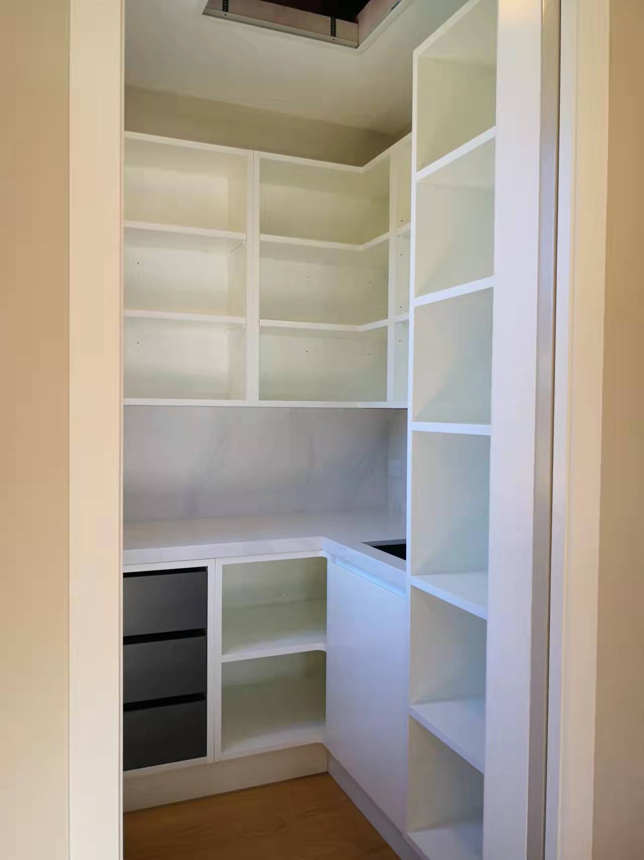 往左邊,就是樓上樓下的四個臥室,再往左走,就到了三個巨大的車庫和裡面的一個工作間。
