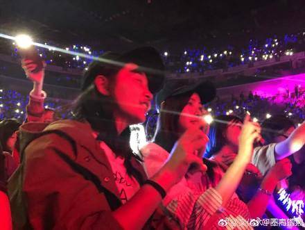 會像所有迷妹一樣,開啟手機閃光燈全程跟著大合唱,講真的,隔著螢幕都能感受到張天愛對張靚穎的寵愛了↓