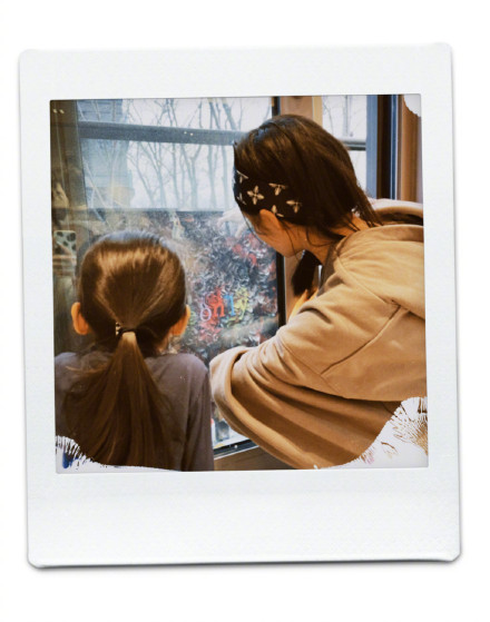 張天愛配圖中出現了一男一女兩個小朋友,三個人一起用各種噴漆DIY出來了許多漂亮的裝飾物品。