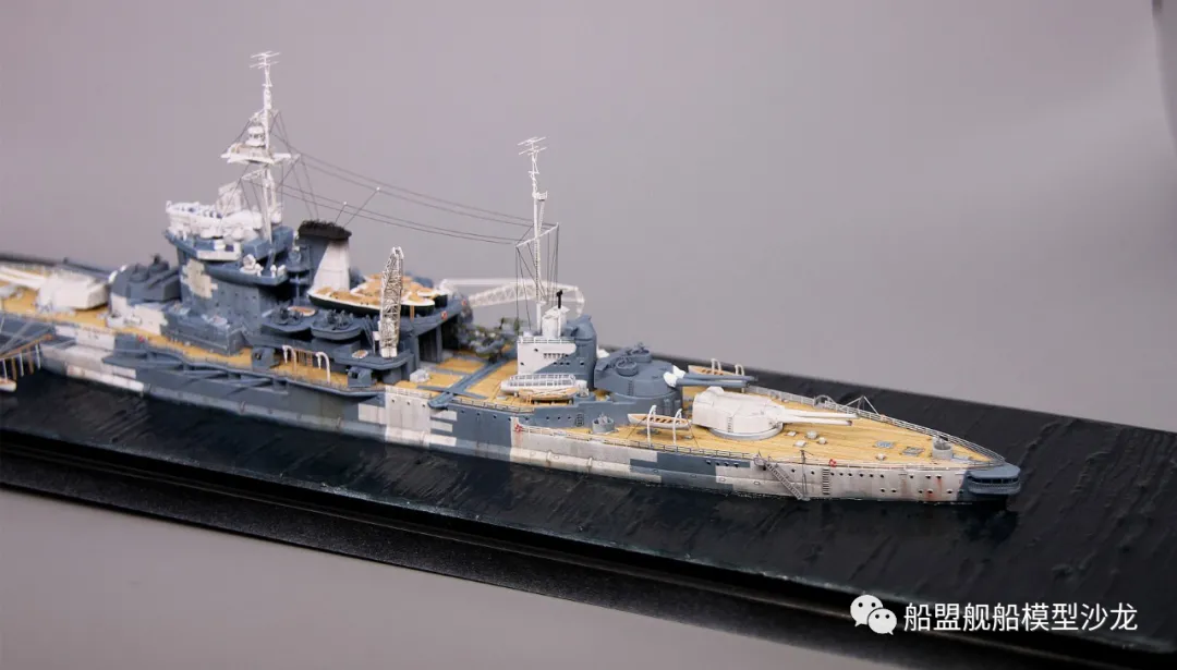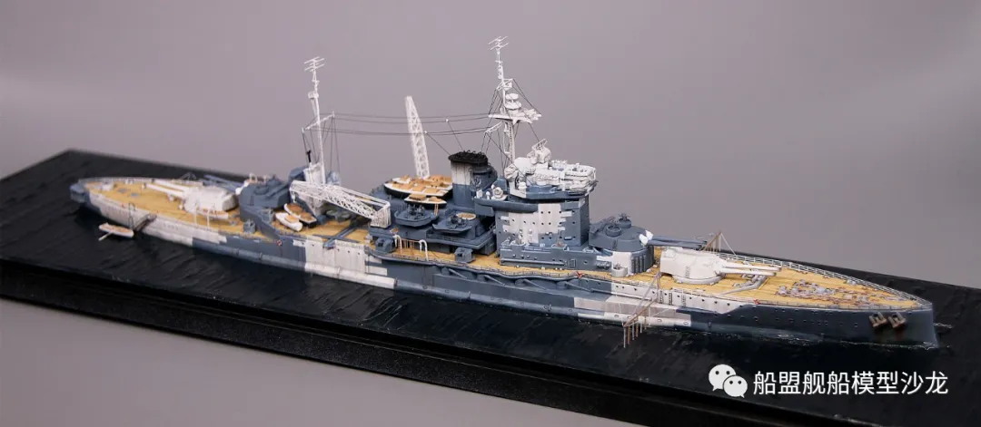 其實說起厭戰這艘船,它的歷史真的是三天三夜也講不完,這艘功勳艦的經歷實在是太多了。不過回想起來,伊麗莎白級這幾艘都是從一戰打到二戰,哪艘經歷都不少,要開這個專題的模型,各個時期的背景瞭解都要做個幾天的功課。小編當然也是屬於那種隨性做船的玩家,在考證方面也比較隨便,只求一個形似,特別細節的方面並沒有考慮太深。比如這個厭戰,炮管就是德國380炮管,哈哈哈這裡已經被熊版指出來了,下次製作的時候肯定會特別注意。