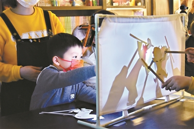 日前,一場體驗中國傳統非遺、製作體驗皮影戲的閱讀活動在廣州楠楓書院舉行。活動主辦方結合剛出版的《給孩子的中國非遺繪本》系列叢書之皮影繪本《光影仙蹤》,指導孩子們動手製作皮影人物,體驗皮影表演的魅力。