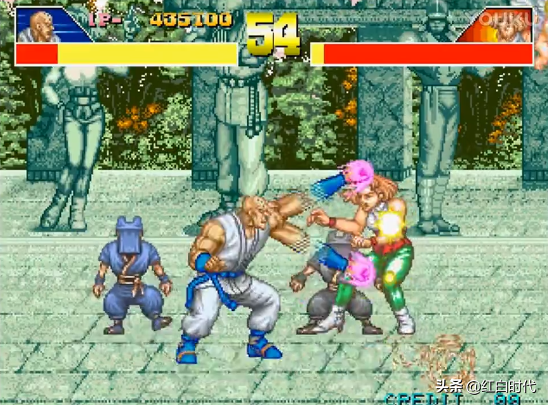街機廳裡的格鬥遊戲,是直到KOF97出來之後,才逐漸被佔的,而在這前面,街霸2、侍魂、豪血寺一族、真人快打等格鬥遊戲可都是各放其彩,都挺受人歡迎的。為什麼說對豪血寺一族印象深刻呢,主要是老太太滿螢幕飛彈以及吐假牙的招數,實在是太讓人過目不忘了。