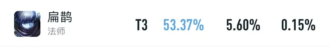目前,扁鵲的勝率高達53.37%,是紫刀沈夢溪跌落神壇後,第一位能接近54%勝率的法師。