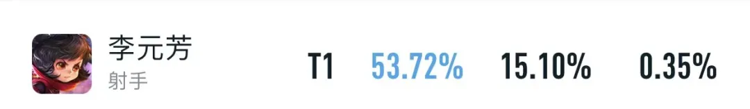 此外,由於孫尚香的降溫和百里守約的持續低迷,也使得其他射手迎來了“達摩式加強”,其中,李元芳的勝率增幅最大,已經是頂端局的發育路榜首了。