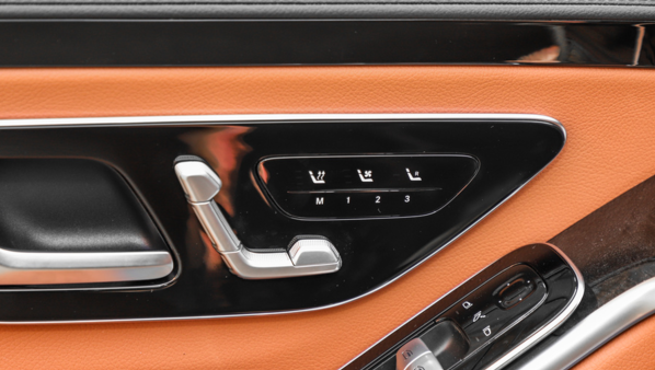 副駕駛位的開關飾板帶有座椅加熱、通風及記憶功能,賓士S級通風的三個檔位都是吹風檔,加快汗液的排放,改善身體與座椅部位的空氣迴圈。