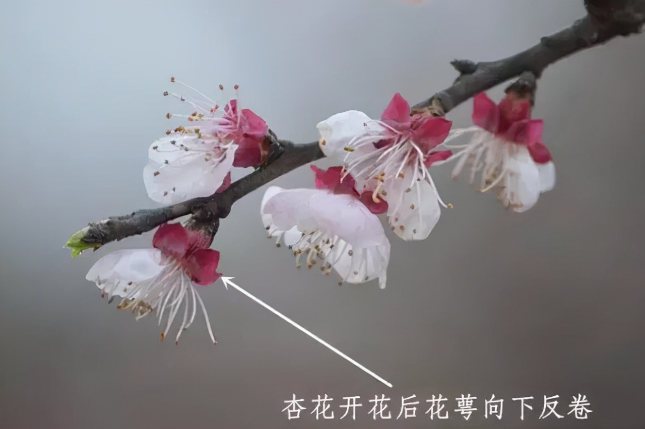 ⑨最後和大家說說杏樹,杏樹的花朵鮮紅,花萼比較的顯眼,因為在開花之後,它的花萼有著很明顯的一個反捲,就這一個特徵,辨認度還是很高的。大家可以多看看, 認識來也是很簡單的。