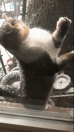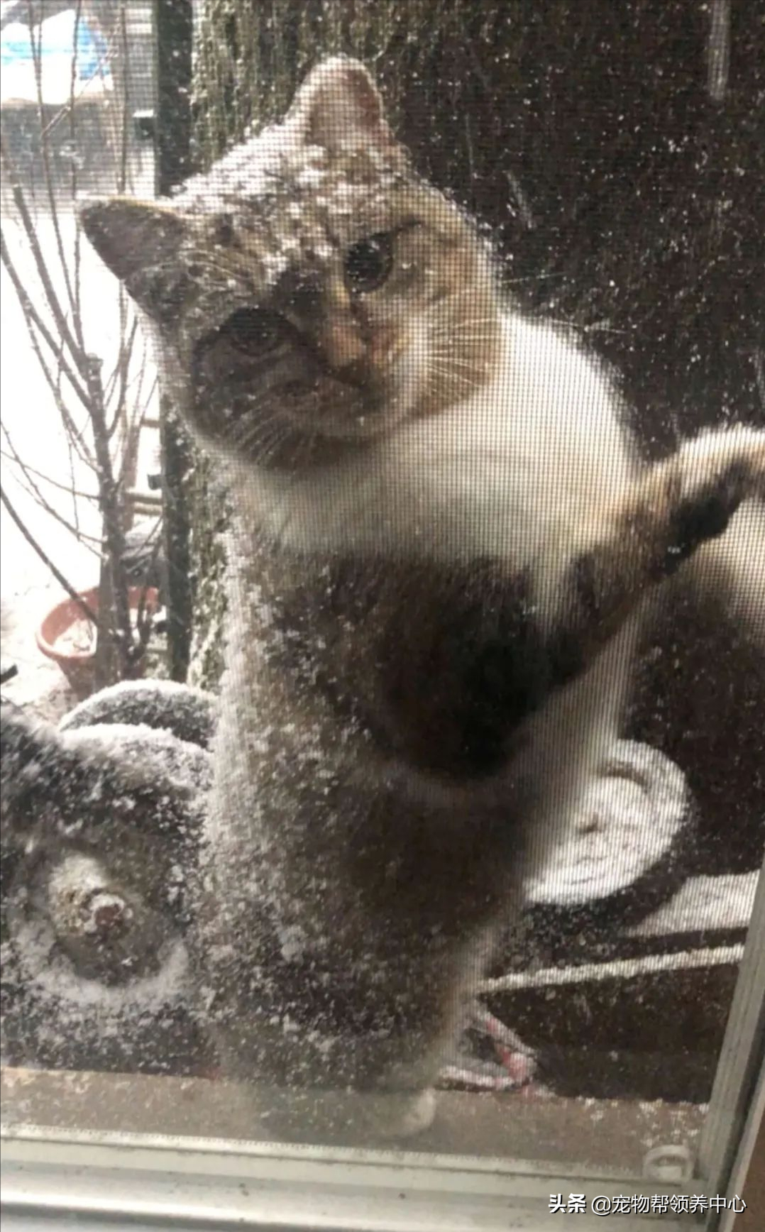 這時他發現窗外一隻身上落了不少雪片的貓咪,再不停的扒拉窗戶,彷彿在說:能救救我,開下窗戶麼?我好冷...