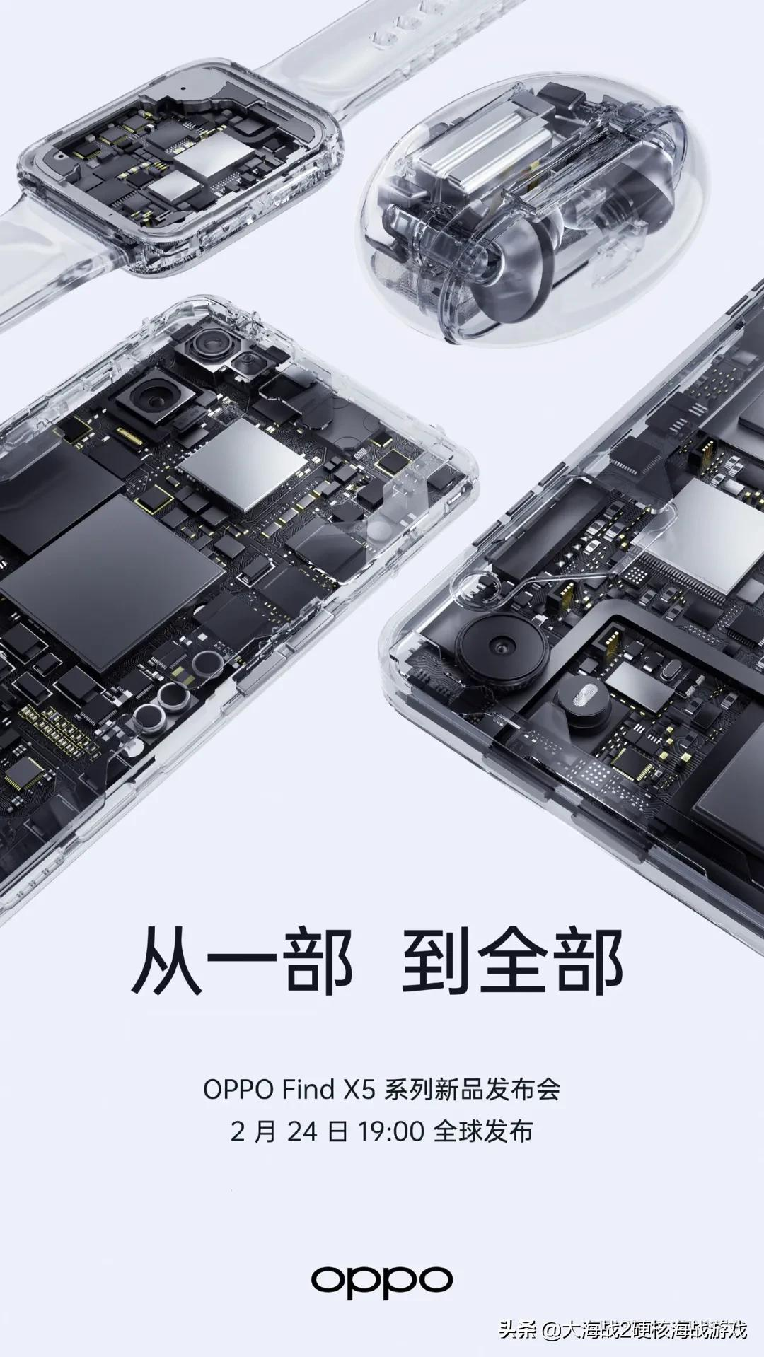 據悉,OPPO Find X5 系列新品釋出會將於 2 月 24 日 19:00 召開,官方 2 月 17 日下午公開了即將釋出的 4 款新品,宣傳語為「從一部,到全部」。