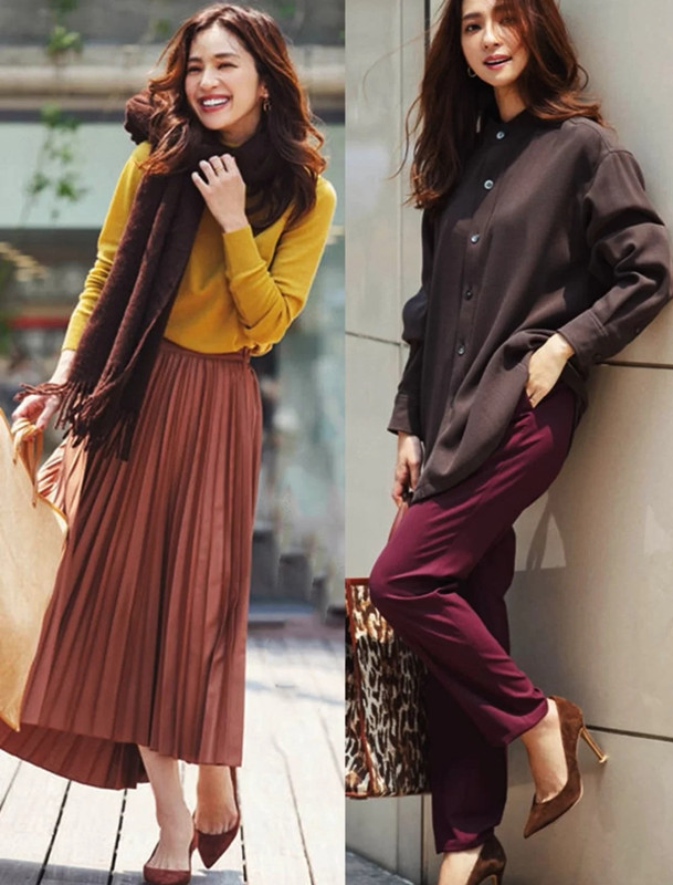 中年女人不適合色彩明豔度過高或者是過低的顏色,那麼不妨折中一下,選擇中等飽和度的色系。其中,大地色系就是不錯的選擇。自帶柔和、優雅、端莊等氣息的色系,可以輕鬆展現出中年女人特有的高階美感,不管是走在哪裡都能輕鬆hold住。