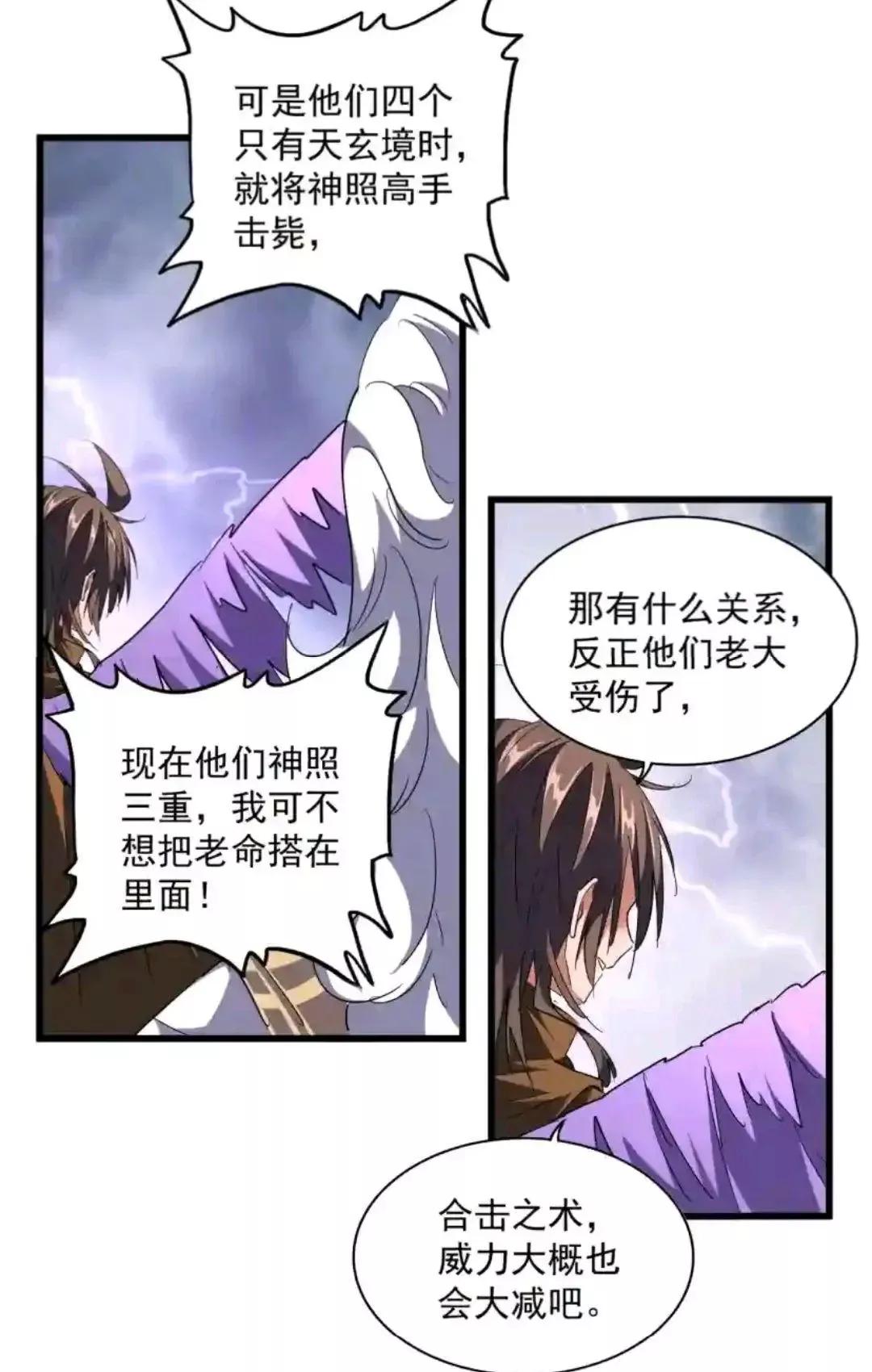 主角從歷老那裡瞭解這四人的實力後,好奇心滿滿,想親眼見識一下他們的合擊術的力量,同時要讓歷老去試探。歷老表示不願意去,會有生命危險。那主角只能耍些小手段挑釁魔策四鬼去對付歷老了。主角以歷老的名義說魔策四鬼的老爹是上了老母豬才會生出他們四個奇葩樣。原本還在互相爭執的魔策四鬼瞬間對歷老起了殺心,可以說主角這招挑釁非常的成功。