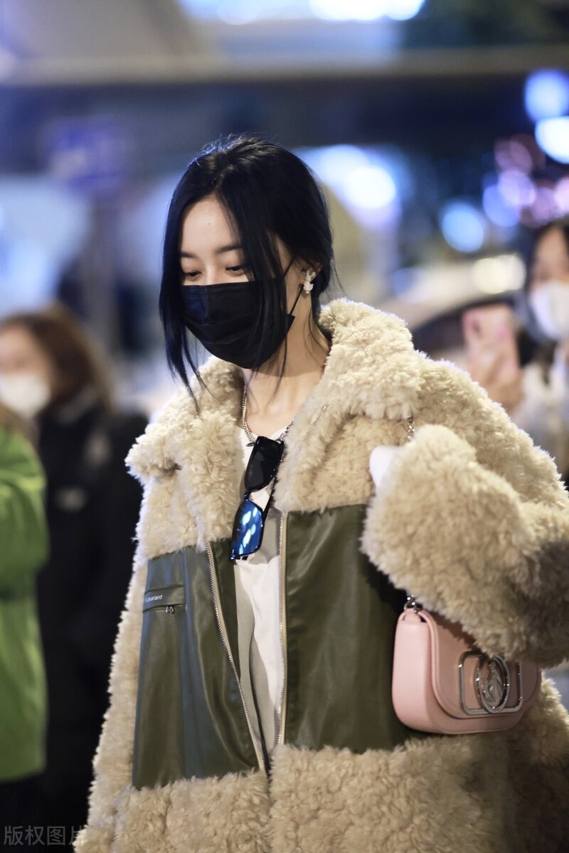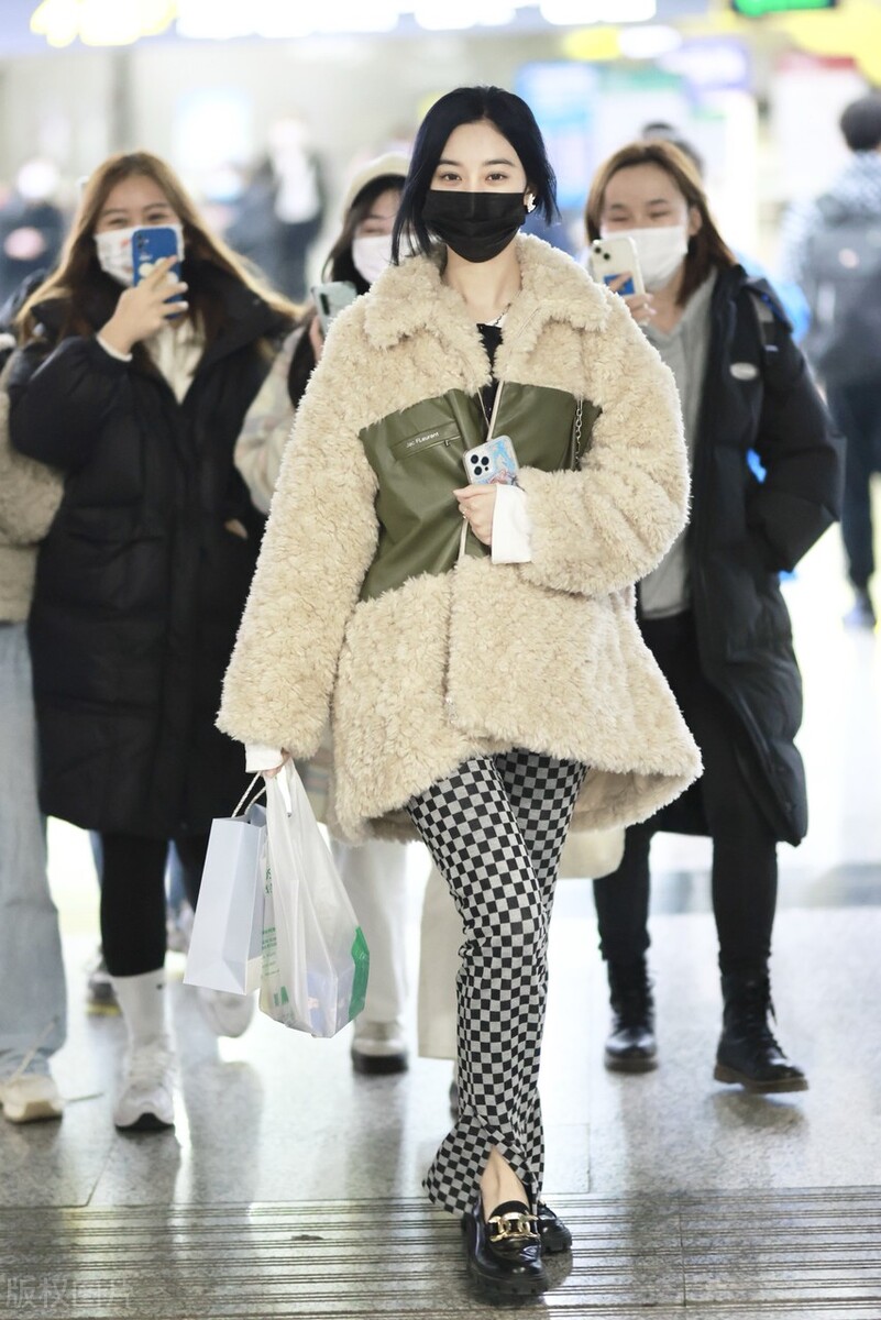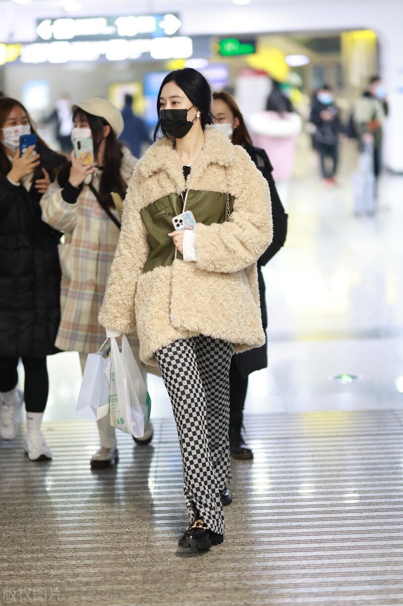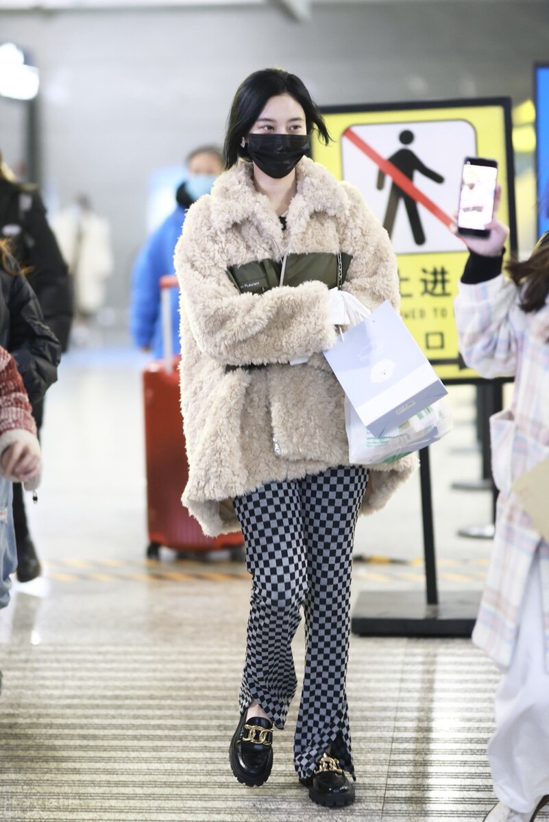 2022年2月18日,徐藝洋現身機場,她穿米色泰迪絨外套搭配棋盤格紋褲,腳踩樂福鞋時髦吸睛。