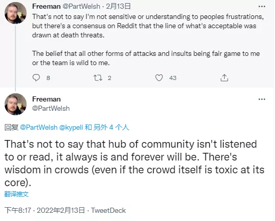 即便開發商和發行商仍未放棄,但玩家和網友們並不買賬,依然在各大社交媒體上對遊戲和開發團隊進行著口誅筆伐和“親切問候”,其中又以Reddit上的火力最為猛烈,以至於《戰地2042》的開發者決定不再同Reddit上的玩家進行討論。